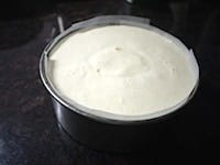 1000wの電子レンジに30秒かけて、人肌に温めた牛乳を加え、よく混ぜます。