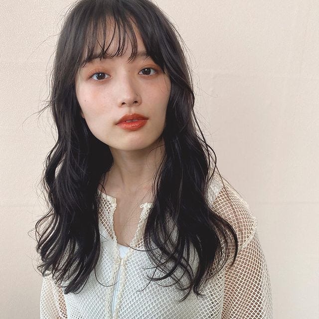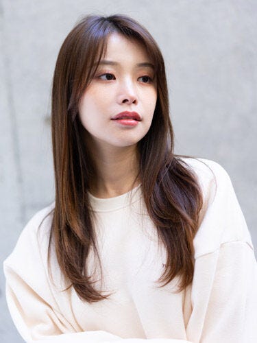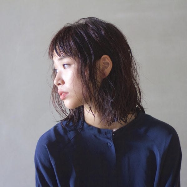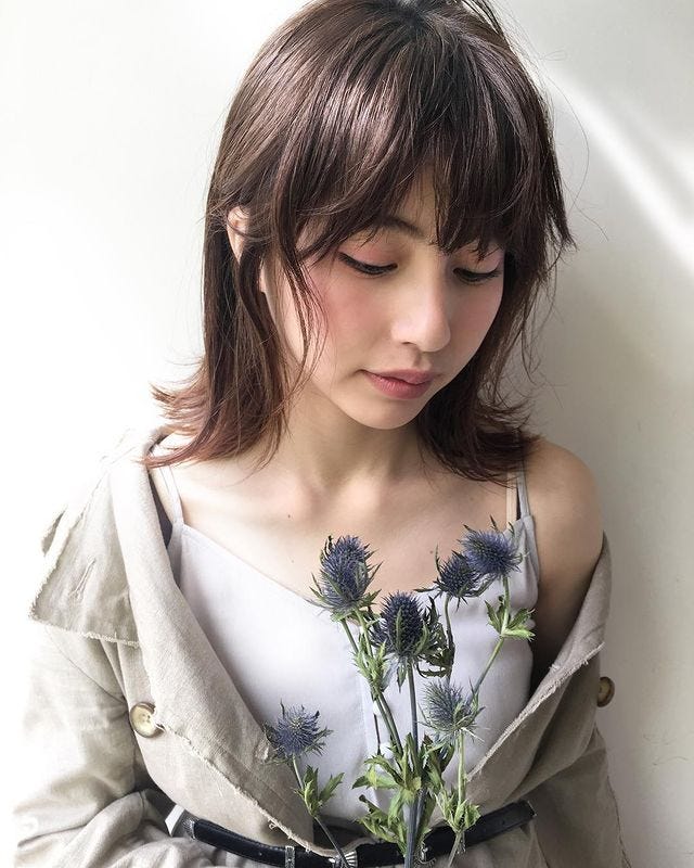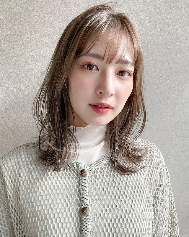 前髪はシースルーバングで、透け感とトレンド感をプラス。首まわりにくびれがあるので、すっきり見えるおすすめの髪型です。