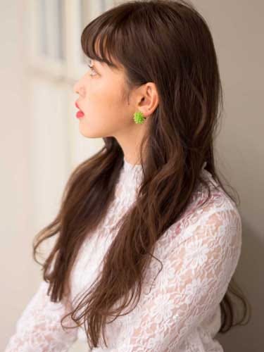 こちらのようなナチュラルなウェーブが入ったロングヘアと、自然なチョコレートブラウンの組み合わせなら、ふんわりと柔らかい外国人風のヘアスタイルが作れますね。