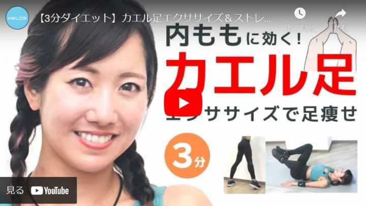 ひっくり返ったカエルの足のように、両脚を曲げてパカパカ動かす「カエル足ダイエット」。寝たままできる自宅トレーニングとして人気の種目です。股関節まわりのストレッチ効果もあり、運動が苦手な人でも取り組むことができます。