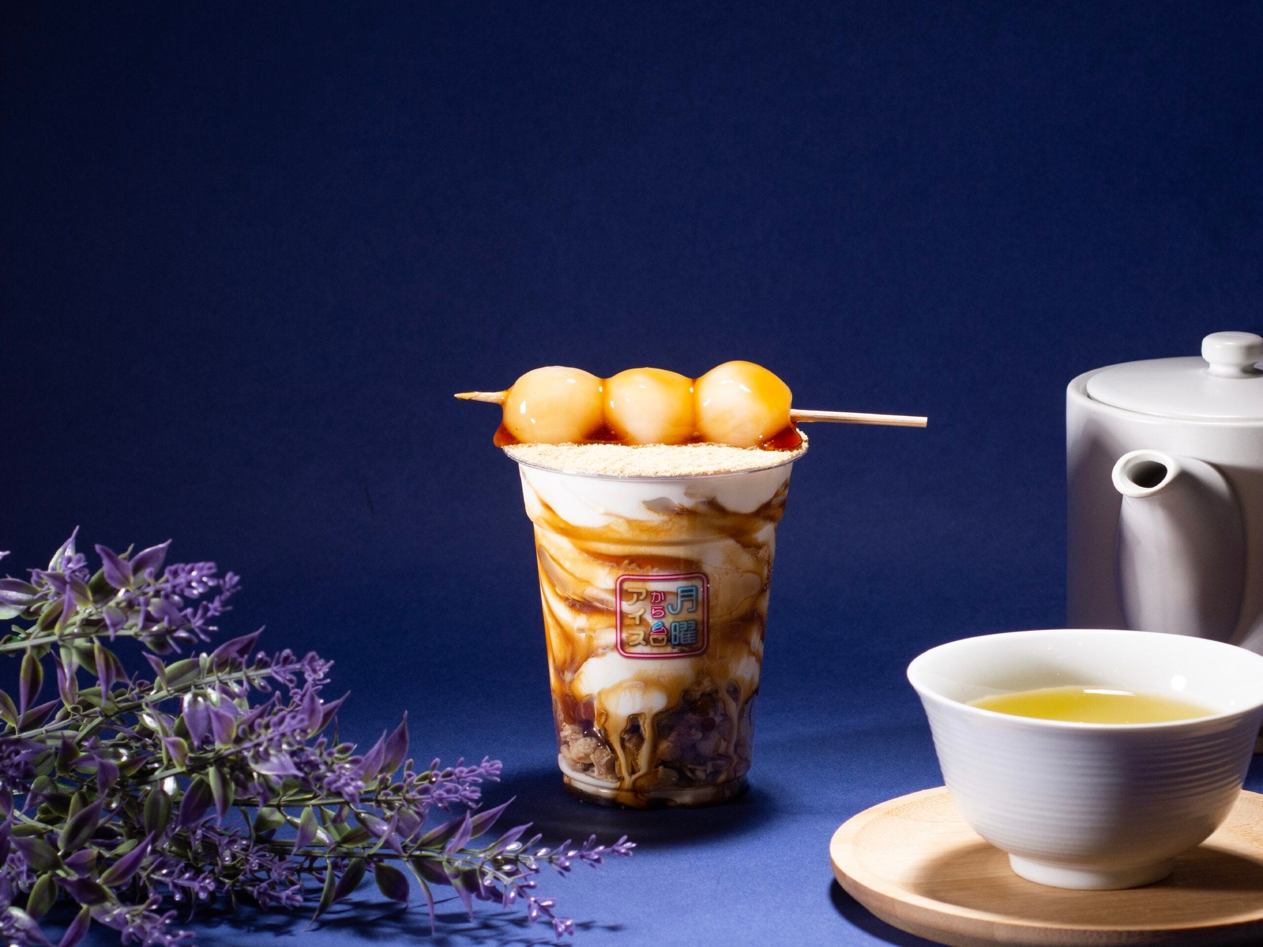 黒蜜やきなこで和風に仕上げ、もちもち食感はもちろん見た目も可愛いみたらし団子をのせている。