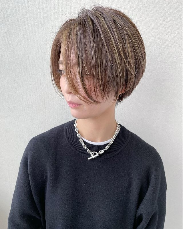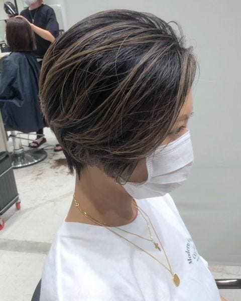 さりげなくハイライトカラーを入れたショートヘアスタイルは、オフィスでも浮かないので挑戦しやすいです。