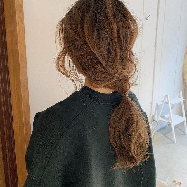 ミディアムヘア~ロングヘアの方ができる髪型なので、雨の日や湿気が多い日などはポニーテールでまとめましょう。