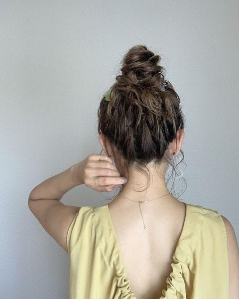 お団子ヘアをおしゃれに見せるには、いかにルーズにまとめるかどうかが大切になってきます。