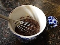 小さな泡立て器がない場合はフォークで混ぜても大丈夫です。マグカップの底に粉が残りやすいので、混ぜる時に気をつけて下さい。