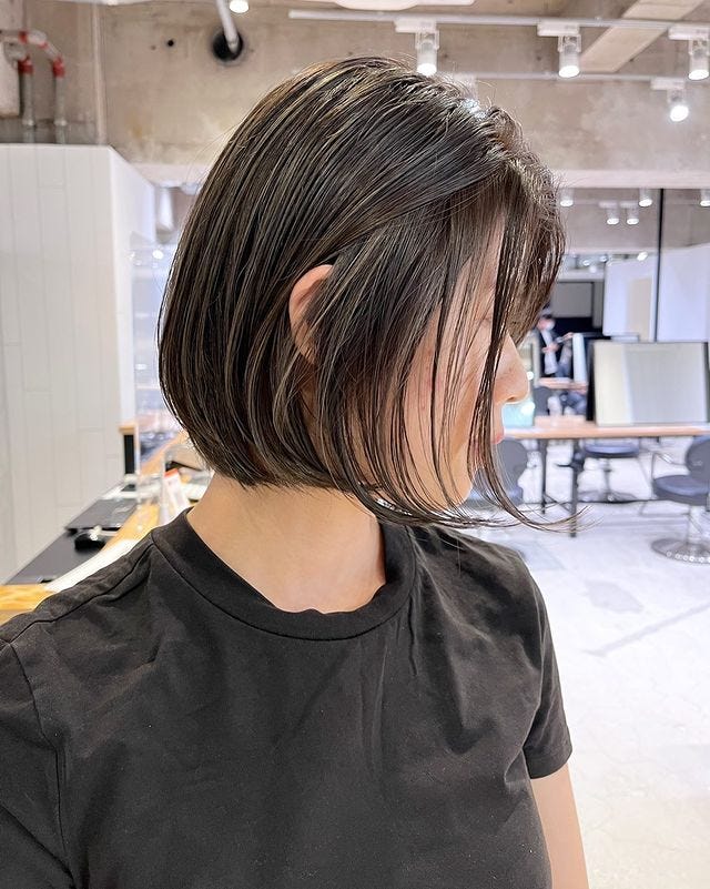 骨格ストレートさんは鎖骨が細く目立ちにくいので、首がすっきり見える短めボブも似合う髪型です。