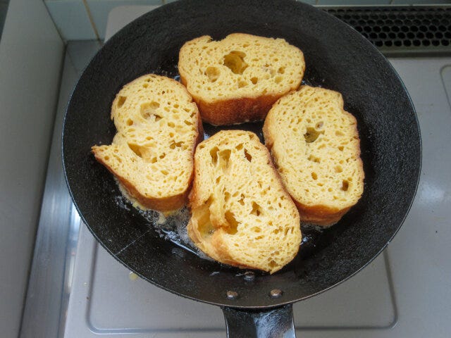 フレンチトーストといえば、「卵液を漬け込む時間が…」って声が聞こえてきそうですが、それは心配ご無用!フレンチトースト作りの救世主、電子レンジを使えば、卵液の漬け込み時間は、たったの1分でOK!カチカチに固くなってしまったフランスパンだって、卵液が中まで染み染みの、ふっくら美味しいフレンチトーストに早変わり。卵液を軽くあたためているので、焼き時間も早いんですよ。