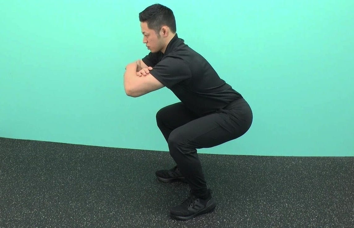 自重スクワット足を肩幅に開き、太ももが床と平行になるまで腰を下ろすエクササイズです。