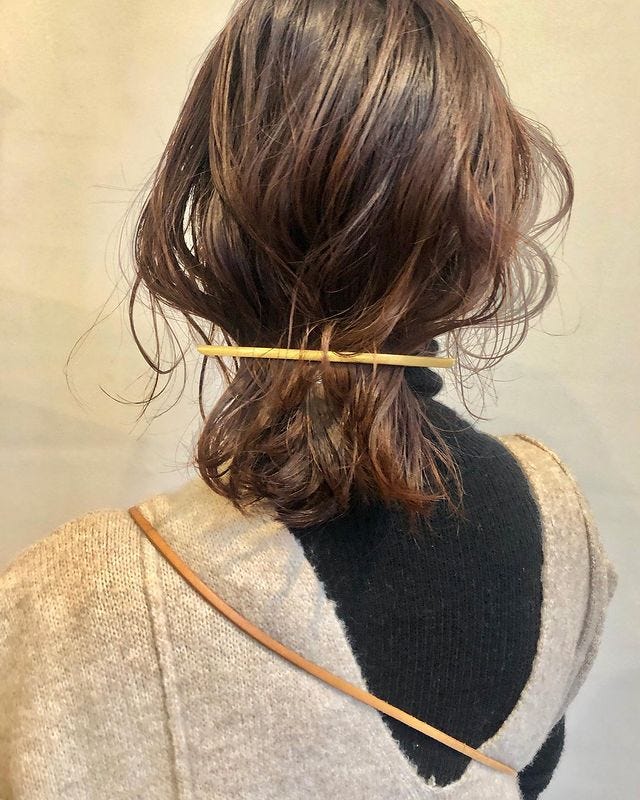 襟足などに短い毛束が残っているボブヘアでは、まとめ髪のヘアアレンジが難しいですが、こちらのようにロングバレットを使うと簡単にまとめ髪ヘアアレンジが作れますよ。