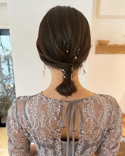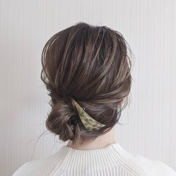 同じ低めのまとめ髪ヘアアレンジでも、ヘアアクセを変えるとぐっとおしゃれ度がアップしますよ。
