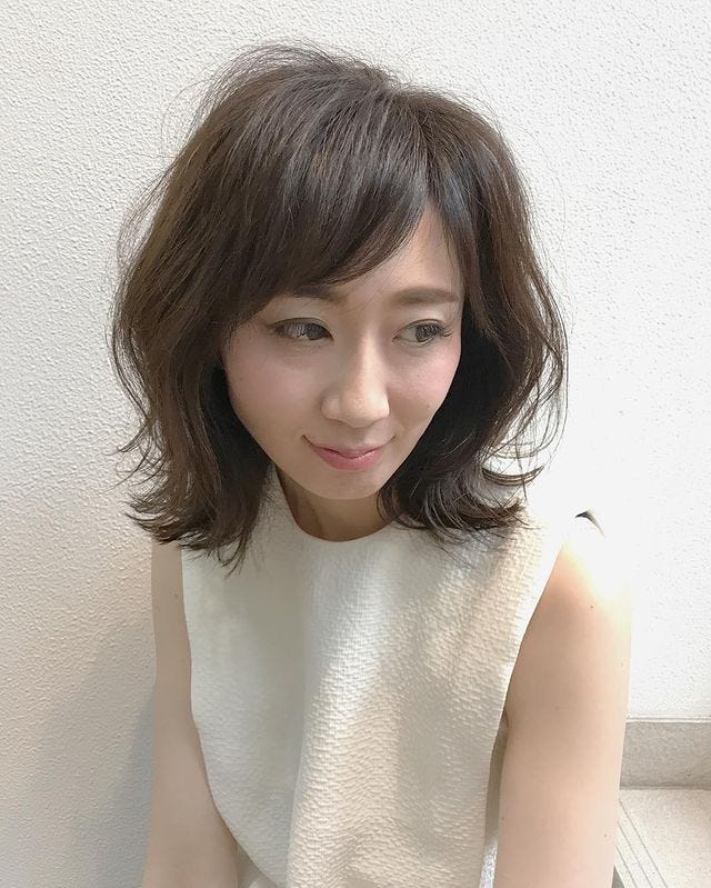 厚みがある黒髪や暗髪のミディアムボブは重くなりがちですが、ワンカールパーマをかけて毛先に動きをつけると、重いだけではなくおしゃれでシンプルなヘアスタイルになります。