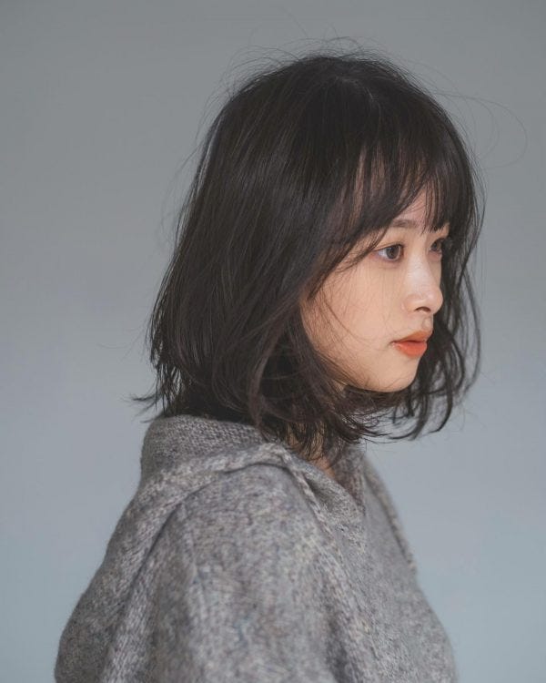 黒髪や暗髪のミディアムボブは、ルーズ感をプラスしてあげるとかっこいい印象となります。