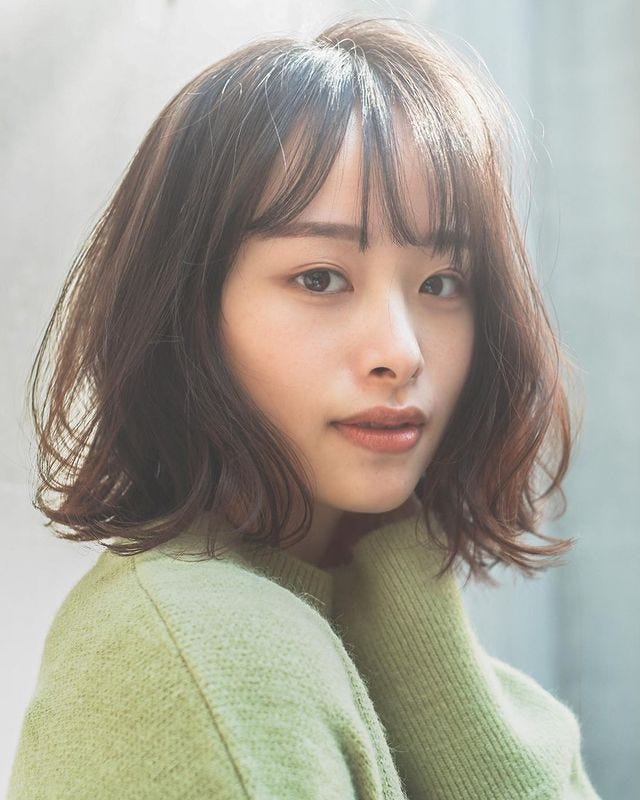 黒髪や暗髪のミディアムボブは重くなりがちなので、ふわっとした動きをつけたヘアスタイルも人気ですよ。