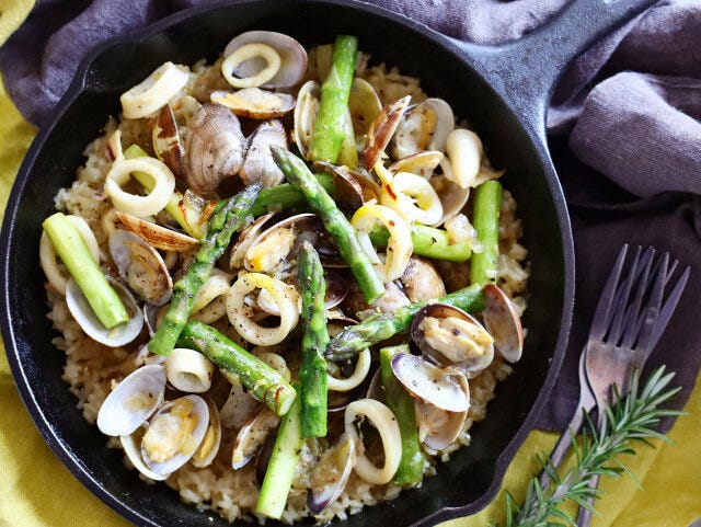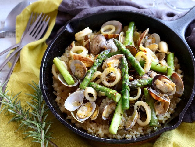 約30分春におすすめ!あさりとアスパラのフライパンパエリアのレシピ