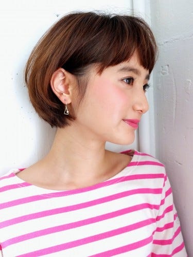 シンプルな髪型ですが、ころんとしたシルエットで女性らしさを演出でき、襟足はすっきりとしているため首元もきれいに見える髪型です。