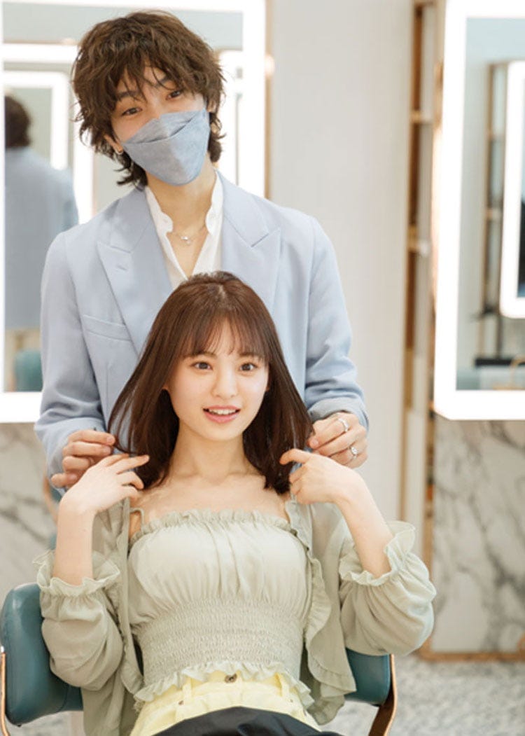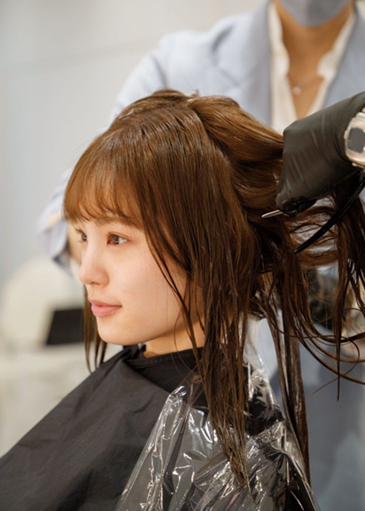 顔の横の髪は前に向かって短くなるレイヤーカットに。ずっと顔横に短い髪を作らずにいたしんしんは、その変化にドキドキ!