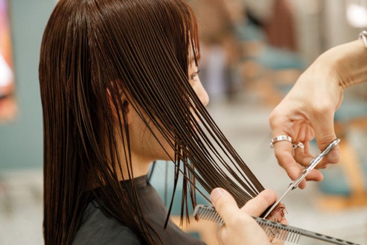 しんしんの「ちょっと、頭が軽くなった気がします(笑)」という感想どおり、全体をぱつんと5㎝ほどカットし、ロングボブへチェンジ。