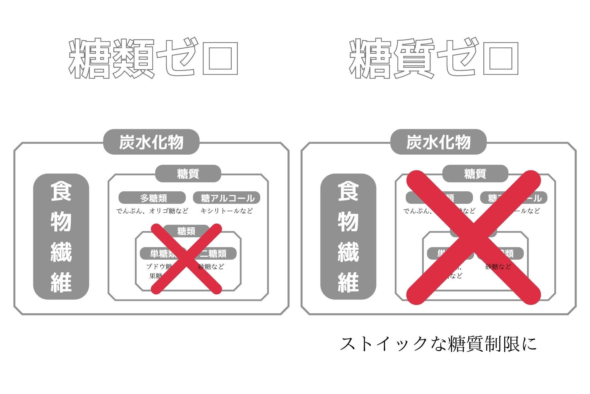 糖類ゼロ=糖類である単糖類(ブドウ糖、果糖など)と二糖類(砂糖など)が入っていない 糖質ゼロ=糖質である単糖類(ブドウ糖、果糖など)と二糖類(砂糖など)、多糖質、糖アルコールなどが入っていない糖類ゼロの場合は、多糖類や糖アルコールなどが含まれています。そのため、ストイックに糖質制限したいという人は、糖類ゼロよりも糖質ゼロを選んだほうが良いということになるわけです。