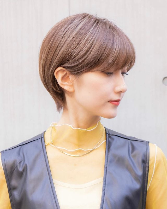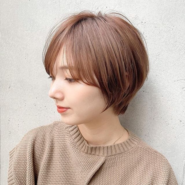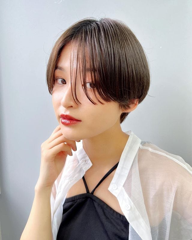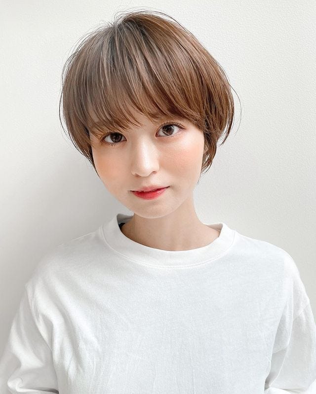 シンプルマッシュショートは、横幅が出やすく面長さんにおすすめの髪型です。