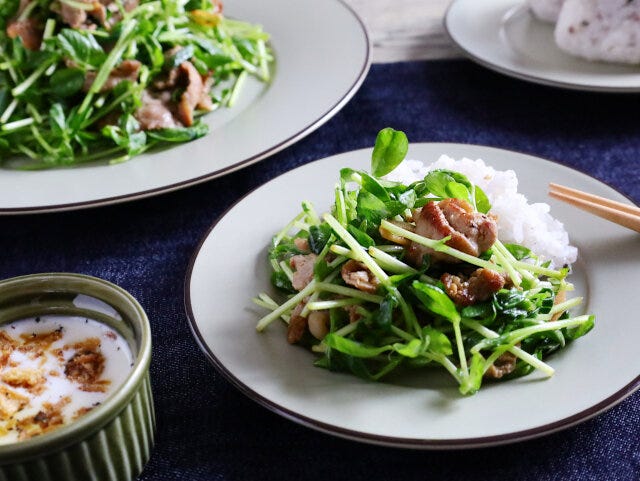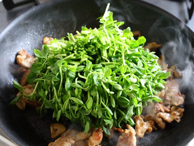 約15分納得の高コスパ!豚小間と豆苗のやみつき炒めのレシピ