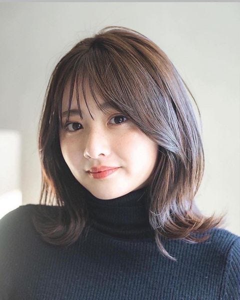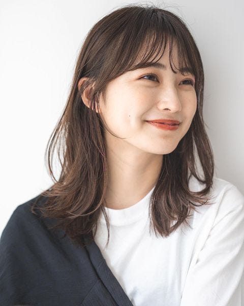 また、ボリューム感があるミディアムの髪型でも、短め前髪にすると重さが気にならないのもポイントです。