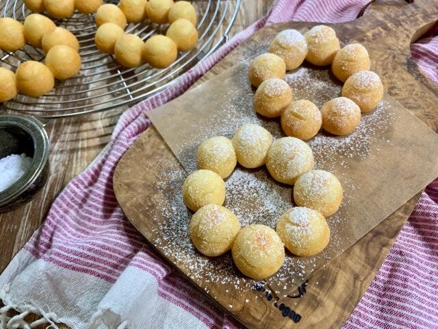 ⑤ ドーナツの油を切って、お好みで粉糖を振ったら完成です!