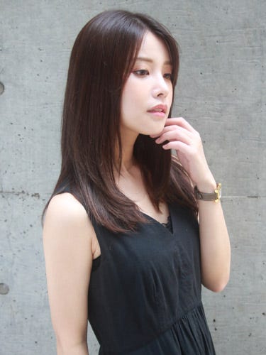 顔周りにレイヤーを入れることで、動きがついて落ち着いた印象のロングの髪型でも華やかさが演出できます。