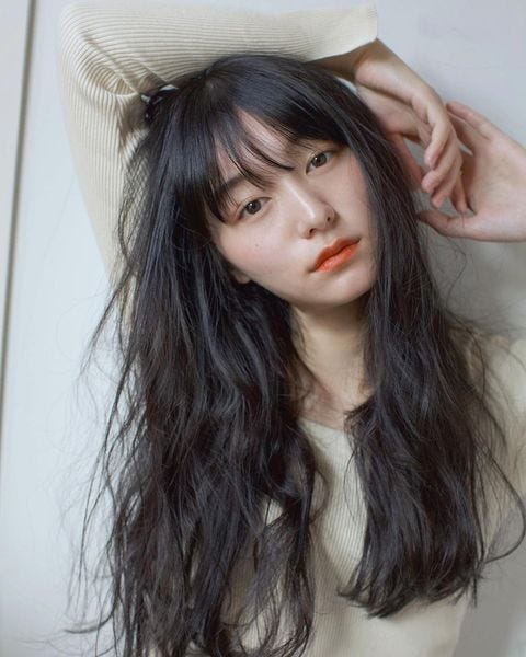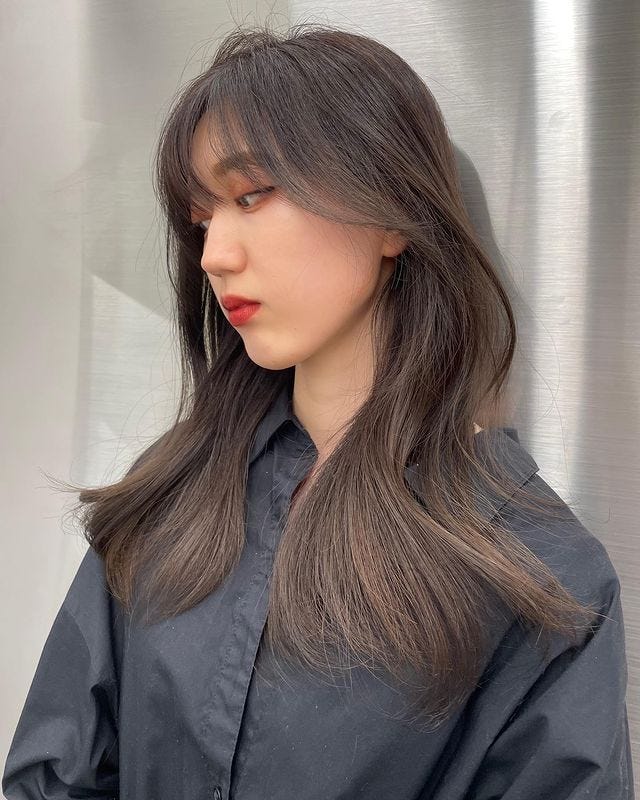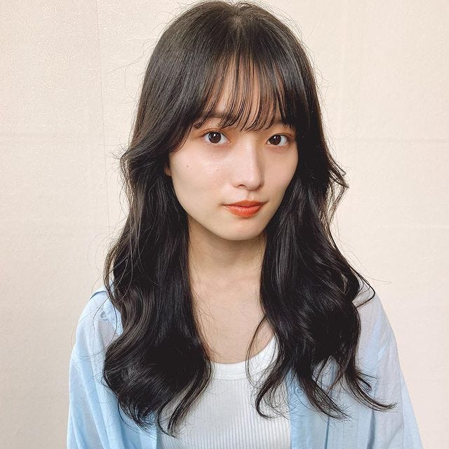 春夏にもおすすめの韓国風ロングは、前髪ありでも大人可愛い仕上がりになります。