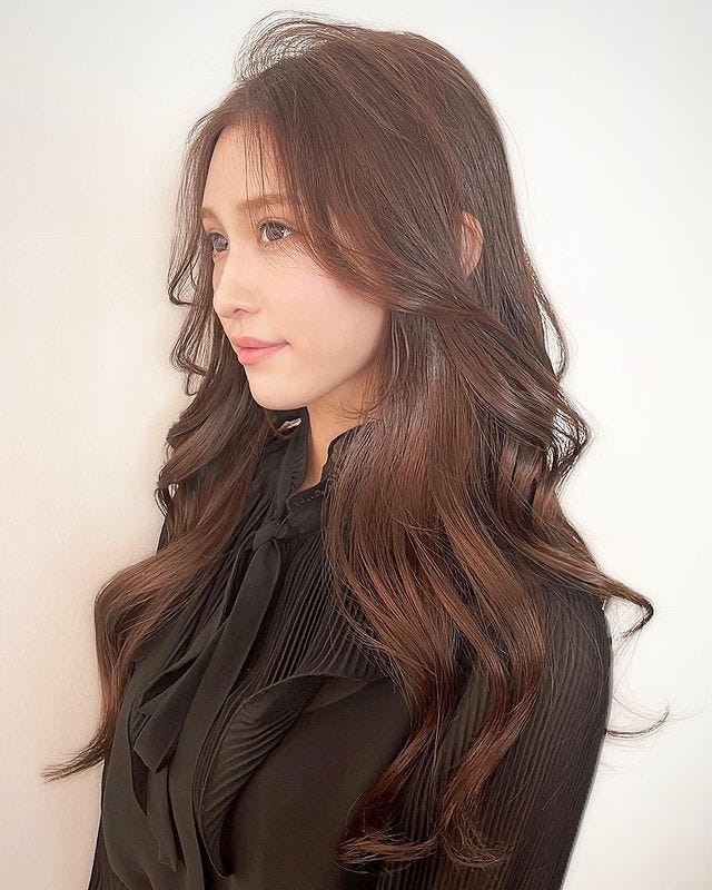 ふわっと可愛いロングの髪型は、暗めの髪色にすることで大人女子にも似合う仕上がりになります。