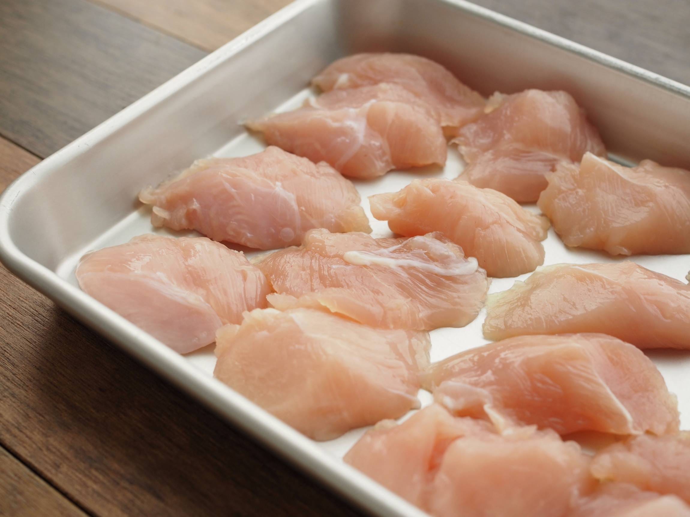 鶏ささみの下ごしらえをする