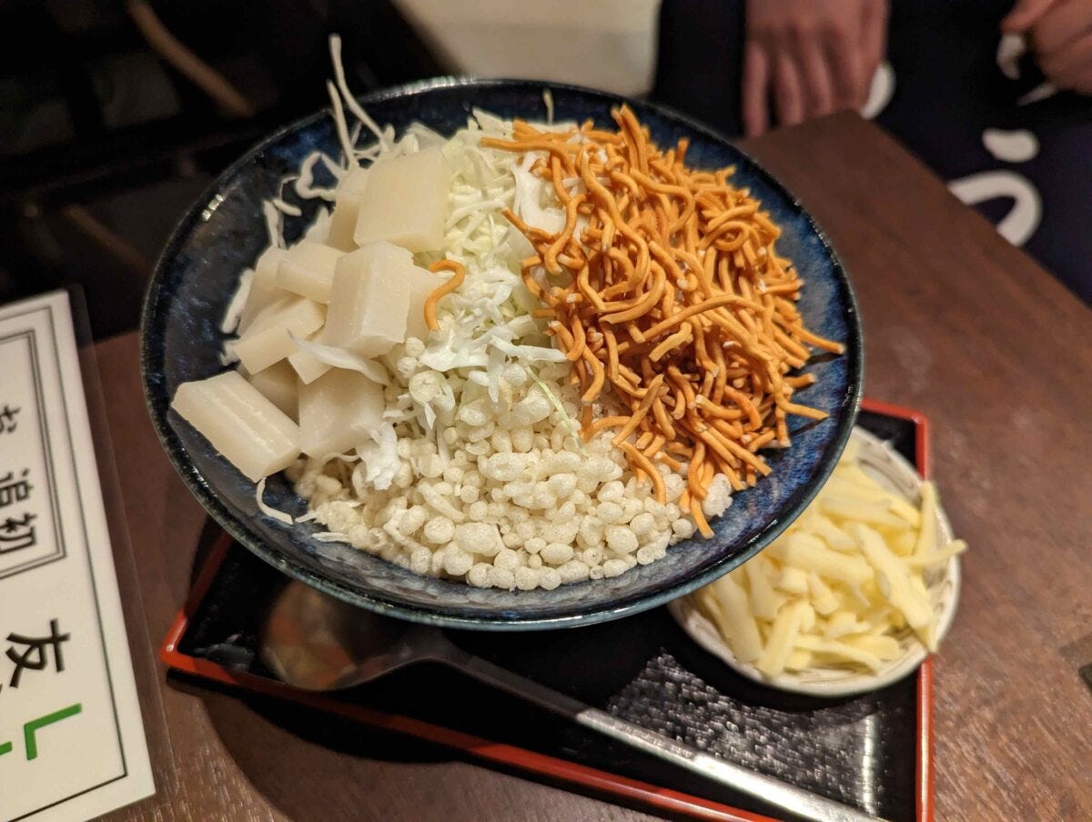 また、480円の素もんじゃにはベビースターと餅、チーズをトッピング。これは記者宅の定番もんじゃの具材なのだが、専門店でそれをやるとどれだけ美味しくなるのか楽しみだ。