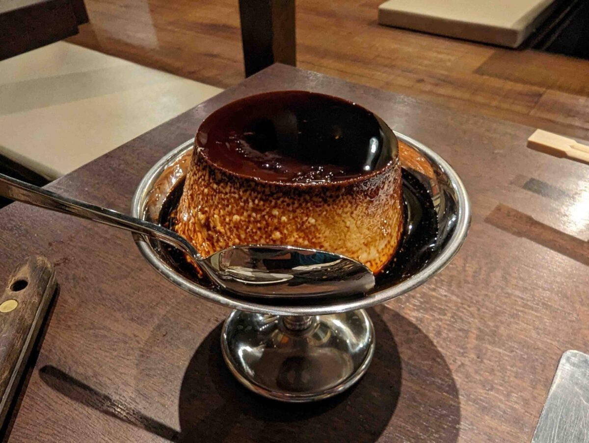 また、最後に食べたプリンも洋食店を手掛ける鳥羽シェフの技術が活かされた、カラメルがほろ苦い大人の味わいで最高。