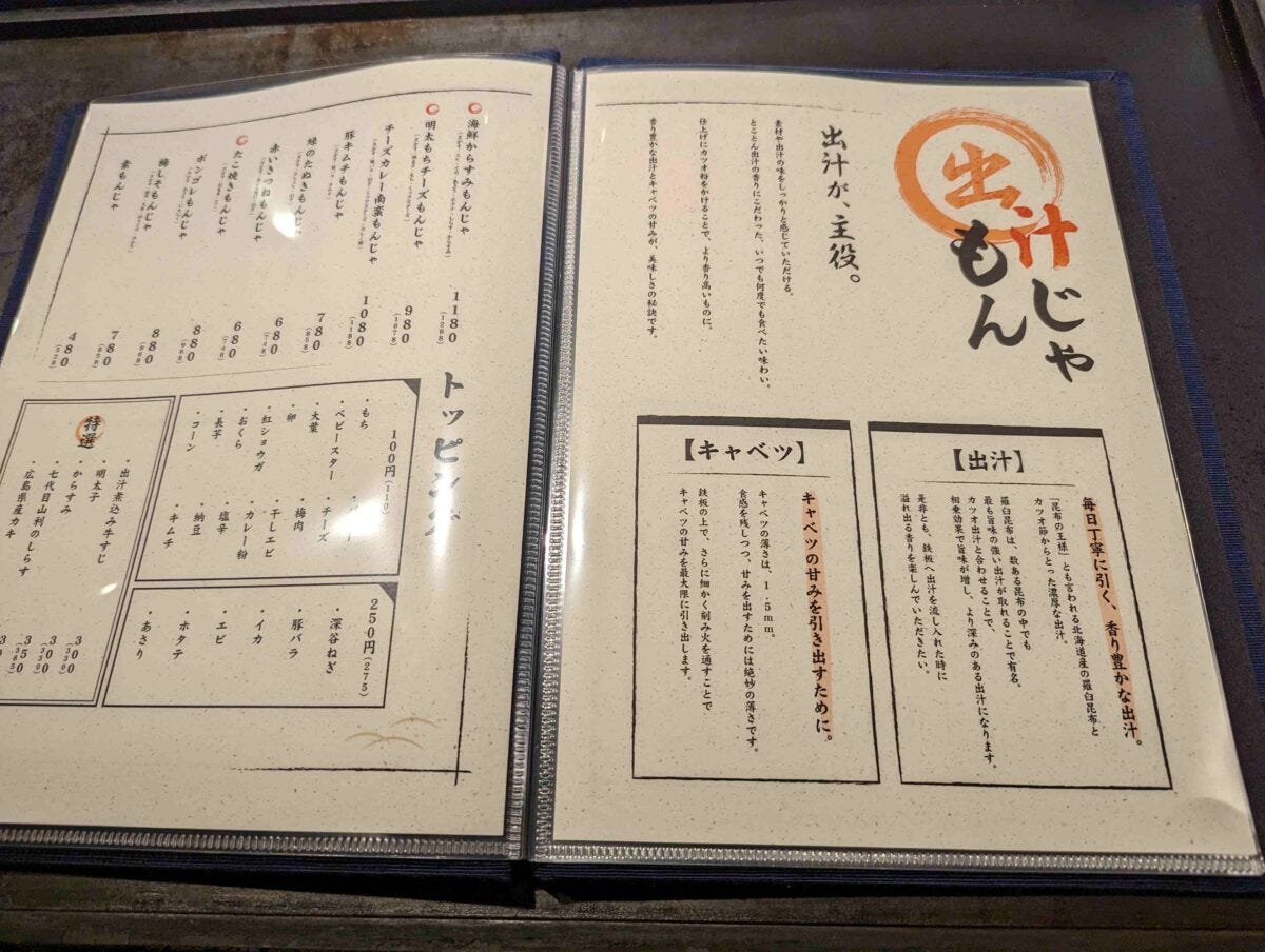 メニューもミシュラン獲得シェフに一般人が期待するような奇をてらったものはなく、一般的なもんじゃ焼き店にありそうなものが主で、もんじゃ480円からとかなり安く設定されている。