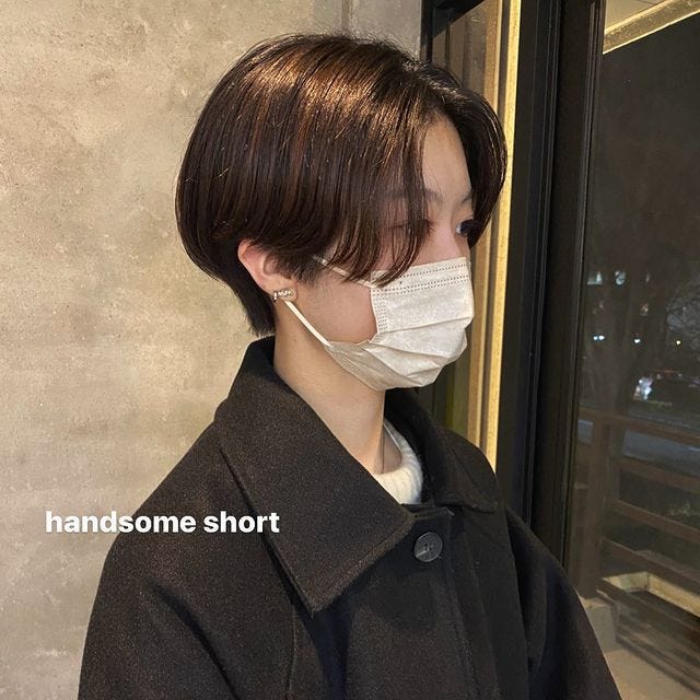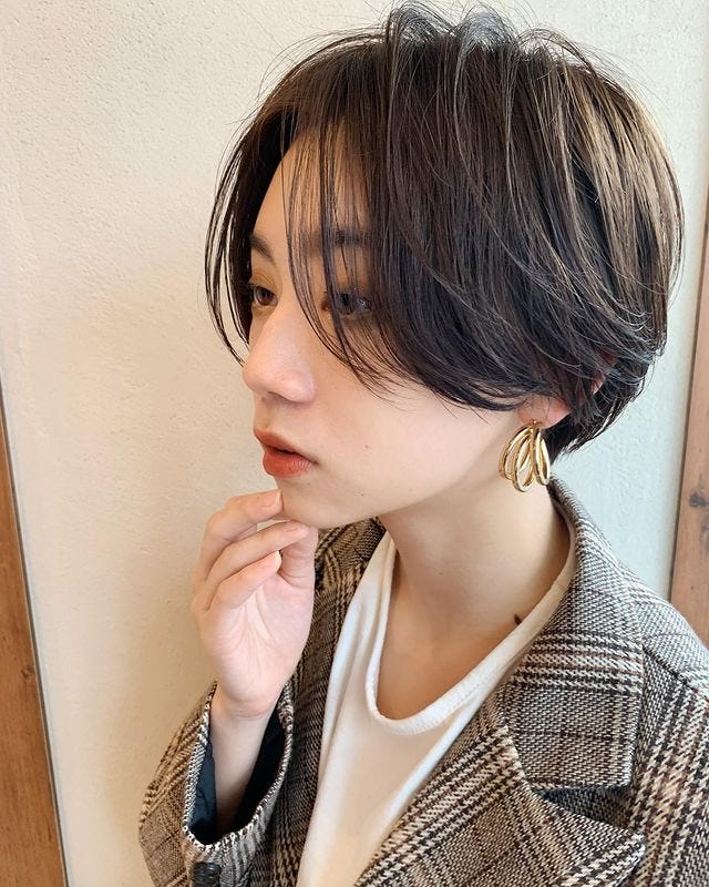 先ほどと同じ丸みシルエットと前髪なしのハンサムショートでも、ヘアカラーを変えることでぐっと印象が変わりますね。