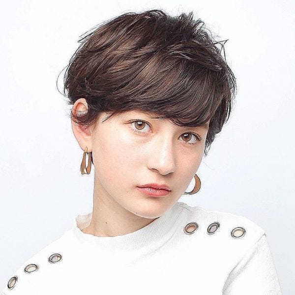 ドライな質感でスタイリングすると、くせ毛のような動きが作れておしゃれな外国人風ショートヘアも楽しめるヘアスタイルです。