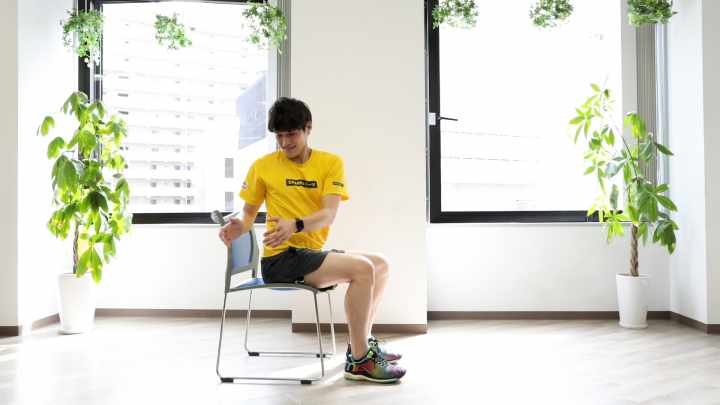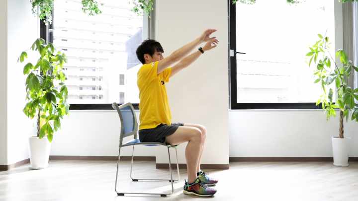 オフィスワークやテレワークなど仕事中など、ちょっとしたスキマ時間にもできるメニューなので、ぜひ日々のルーティーンに取り入れてみてください。また、限られたスペースで行うため、周囲に注意して実施しましょう。