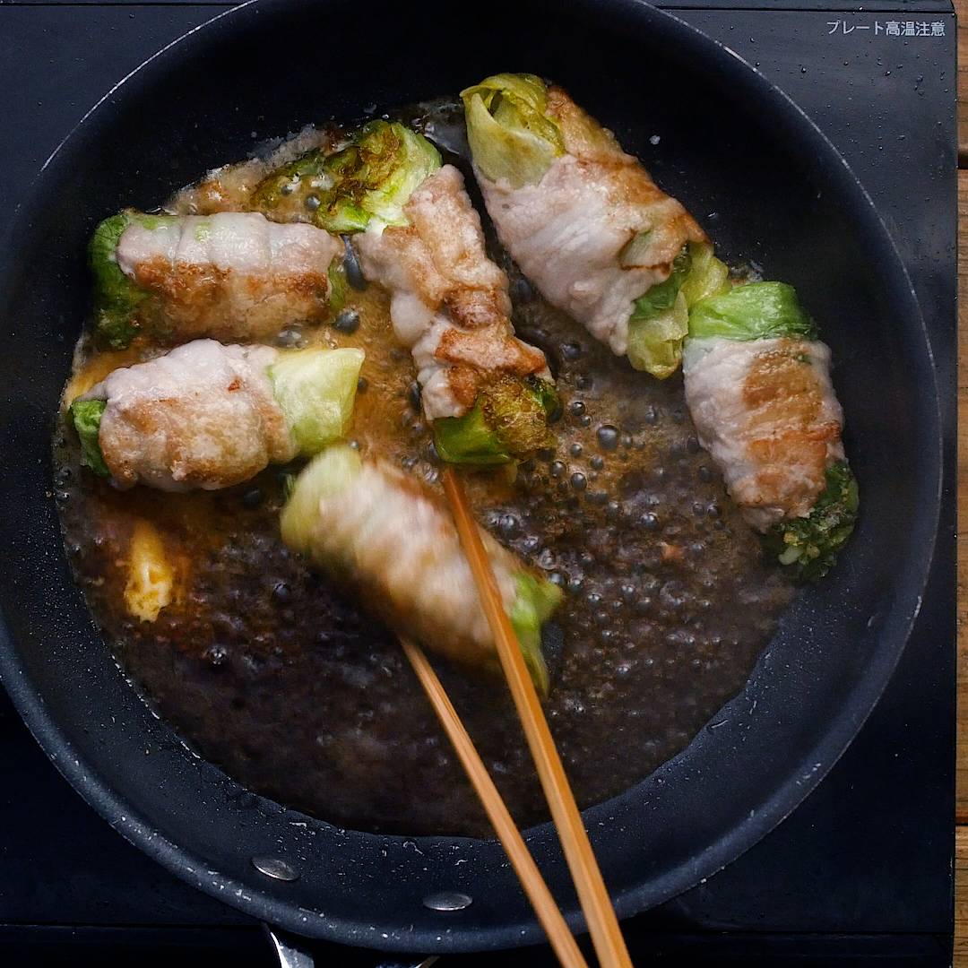 【材料】肉巻きくるくるレタスの照り焼き(2人分)