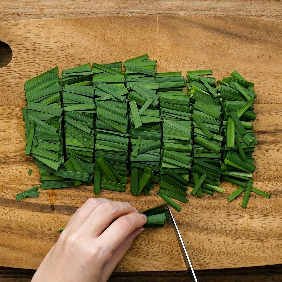 ニラを3cm幅に切ります。