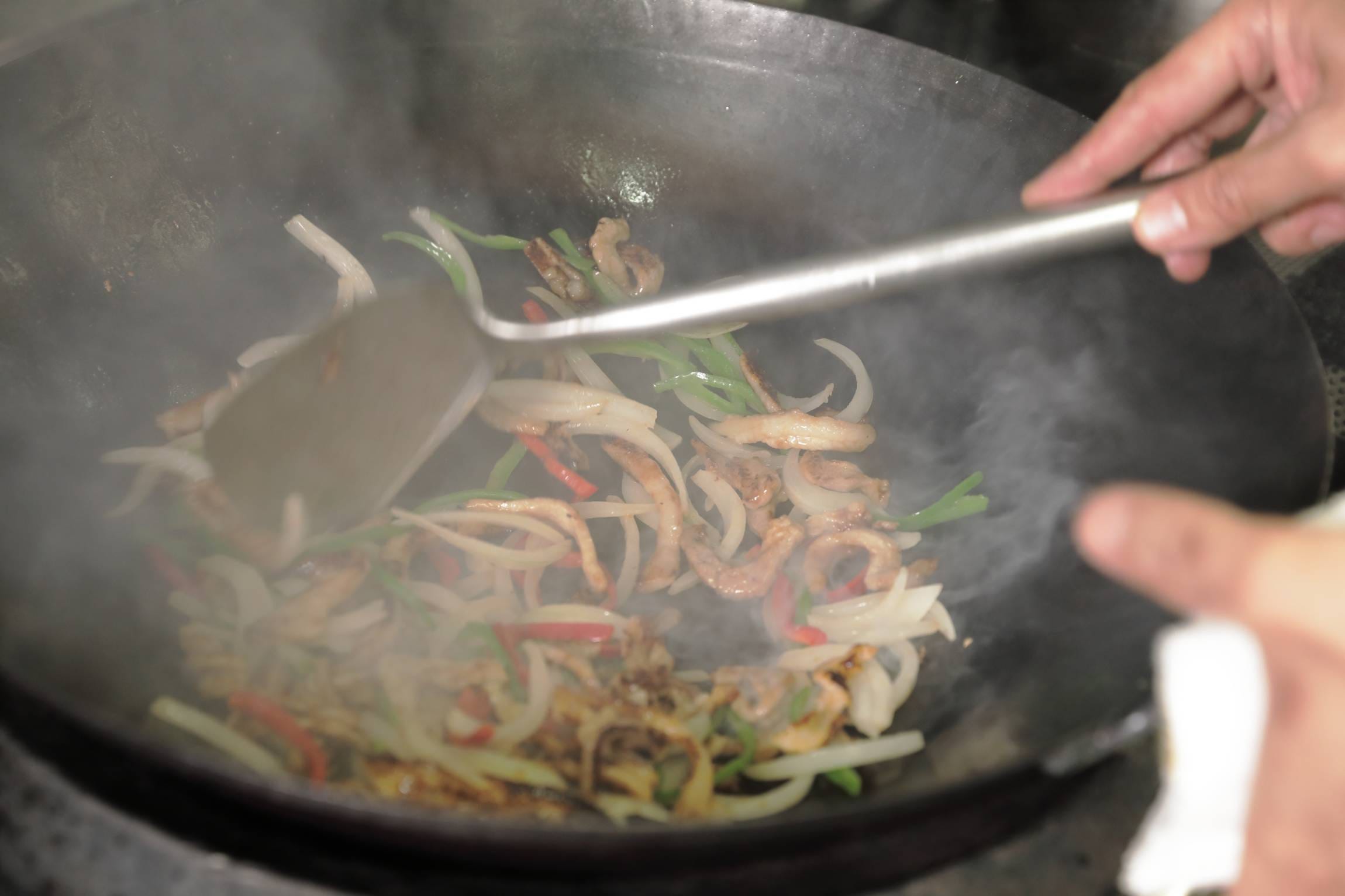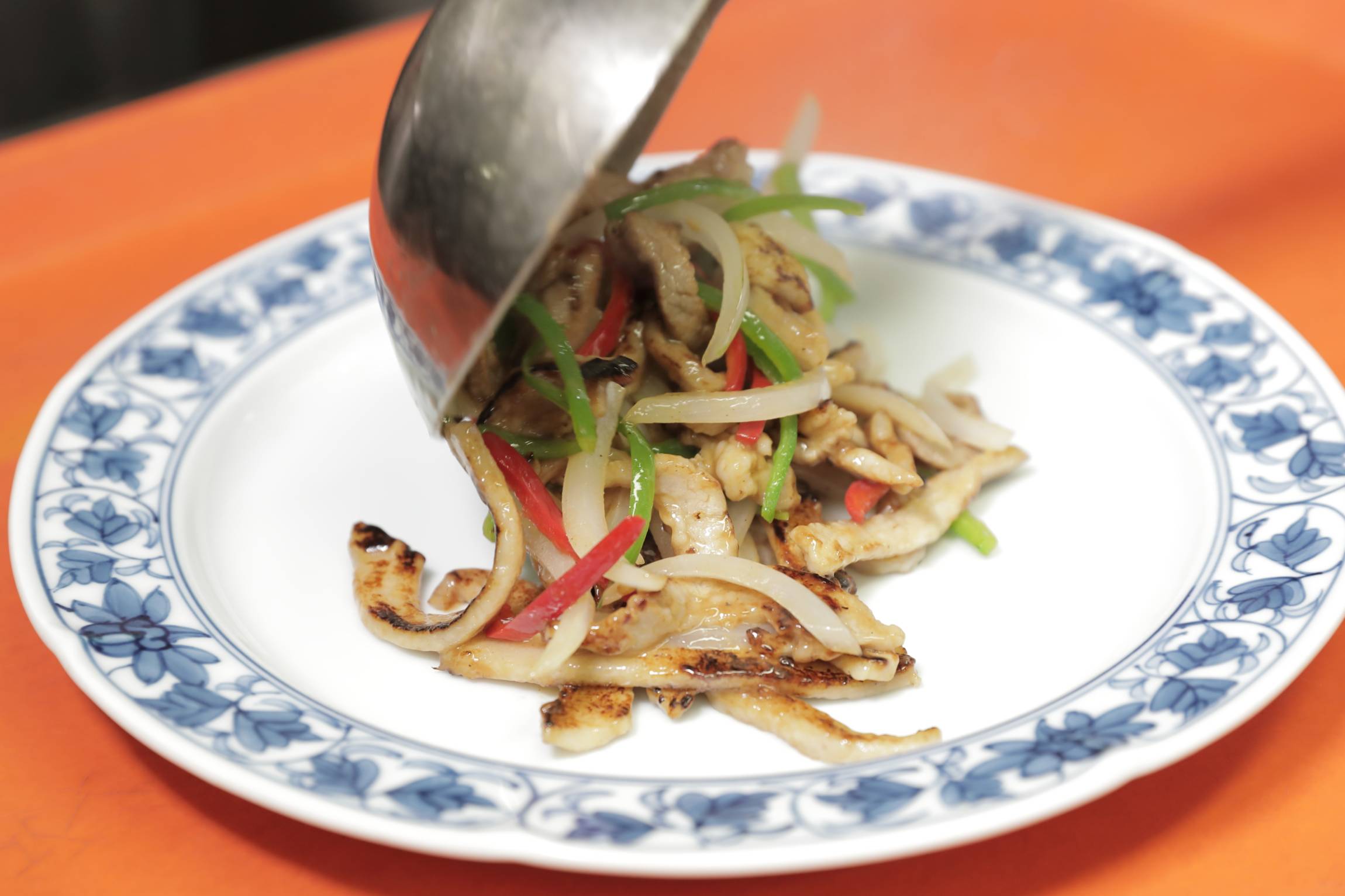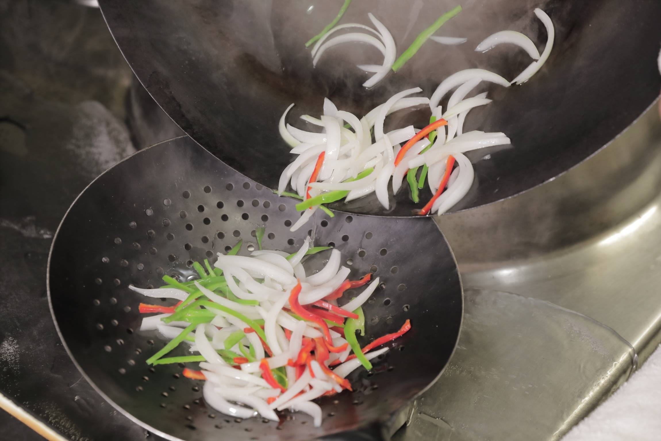 野菜の下ゆでは中華料理の調理でよく使われる技法です。湯に塩を入れることで野菜に塩味がつき、砂糖を加えることで、野菜特有のえぐみが和らぎます。卵と片栗粉を肉にまぶす