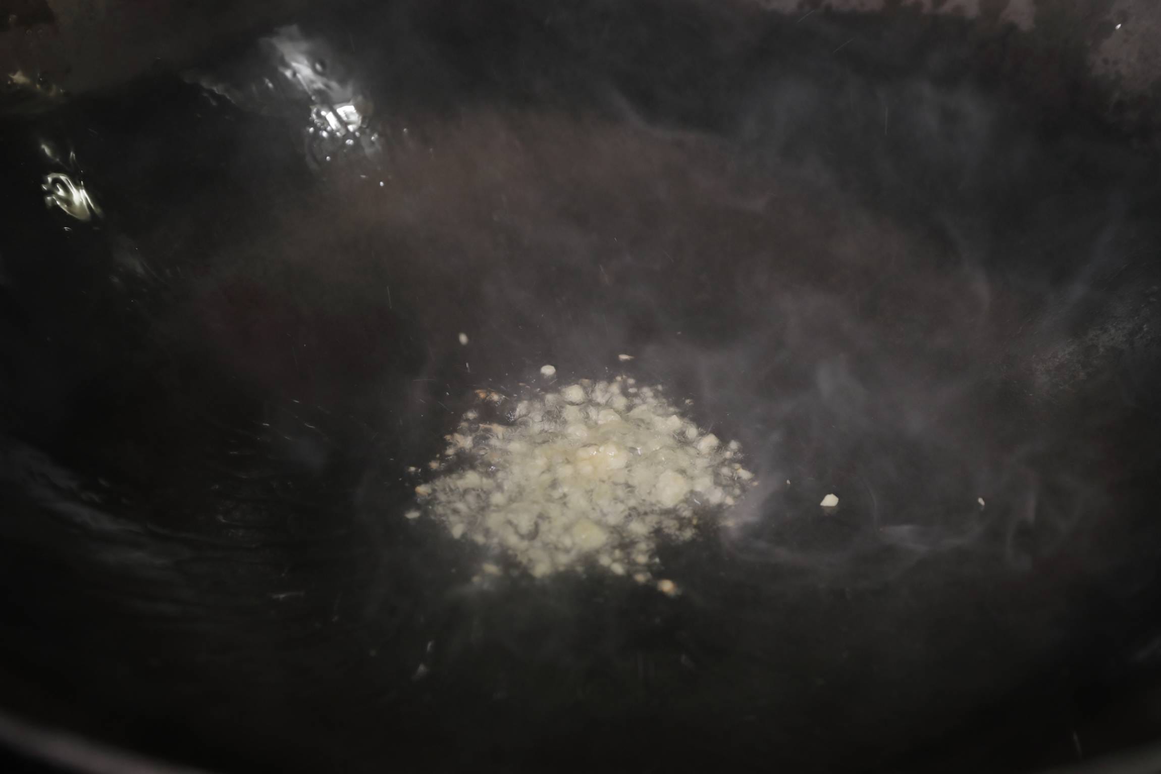 フライパンにサラダ油を入れ、しょうが、にんにくを加えて中火で熱します。