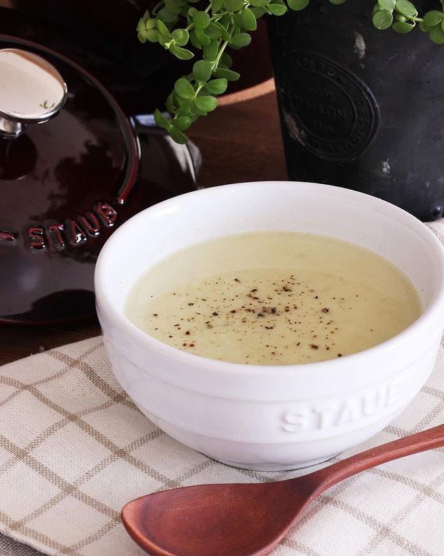 この状態で冷凍保存もできるので、作り置きしておくと簡単ですよ。あとは牛乳を加えて伸ばし、塩で味付けするだけ。