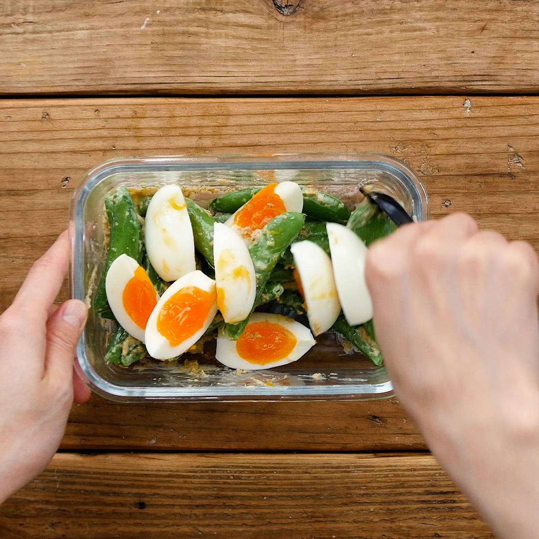 【作り方】スナップえんどうとゆで卵のごまマヨサラダ