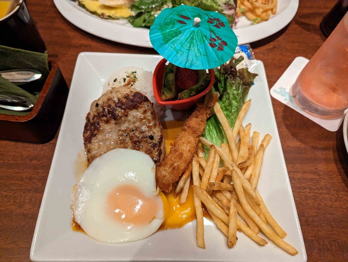さらにキッズメニューも安っぽさを一切感じさせないクオリティで、こちらのKidsロコモコプレートは大人でも美味しく食べられるジューシーなハンバーグに大ぶりの海老フライ、フルーツなどもついて630円と破格。リゾートホテル並みの品質がこの値段でいいの...? と思ってしまうほどである。