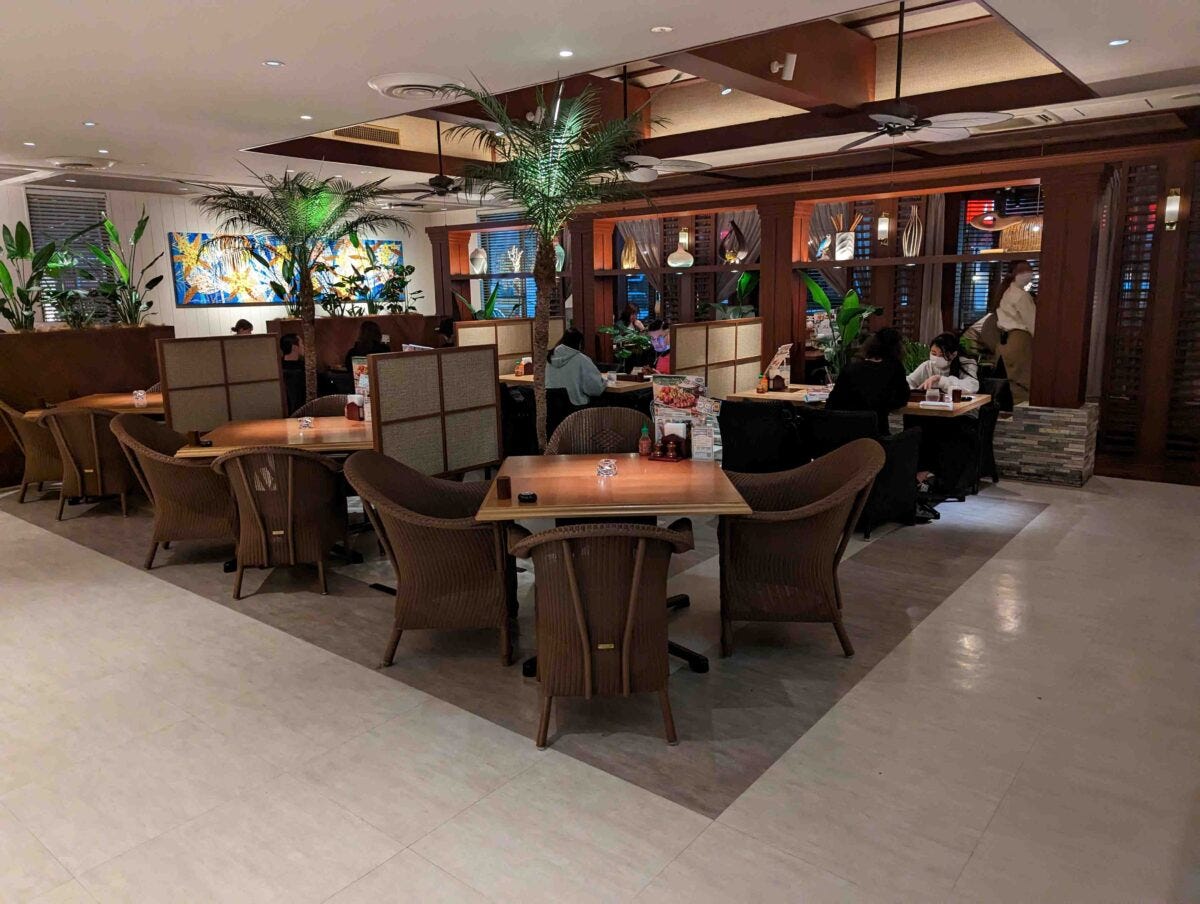 その店とは、ハワイアンレストラン「ラ・オハナ」。オハナとは広義の意味で家族を表すハワイの言で、店舗は高級感あふれるホテルの店のような造りになっている。