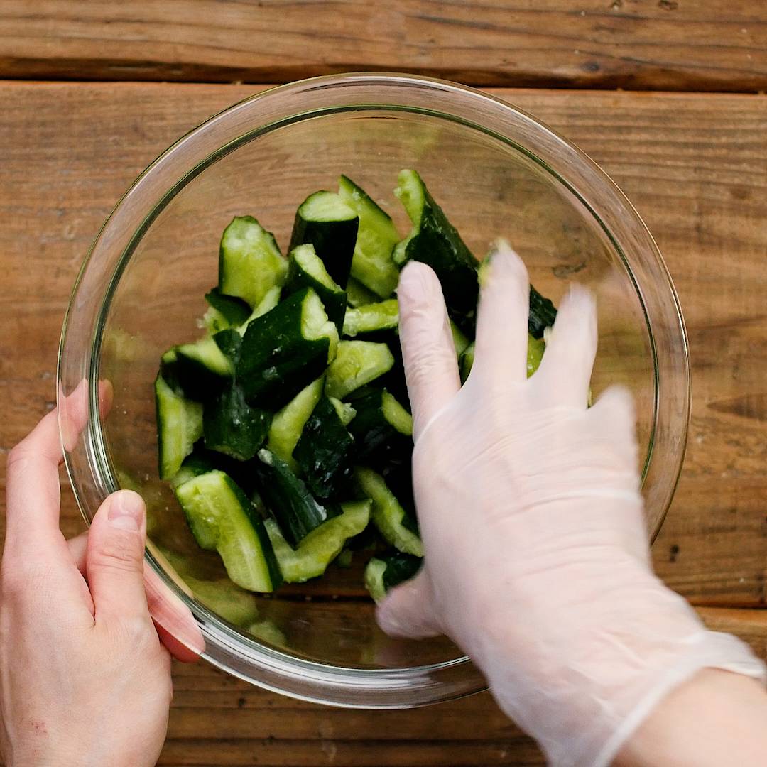 きゅうりは水分が多く、そのままの状態で調味料と絡めると全体の味が薄まってしまいます。そのため、塩をまぶし塩もみをすることできゅうりの水分が外に出て、調味料との馴染みがよくなり、料理全体の味がぼやけずしっかりしますよ。また、水分が抜けたきゅうりのポリポリとした食感を楽しむことができますよ。