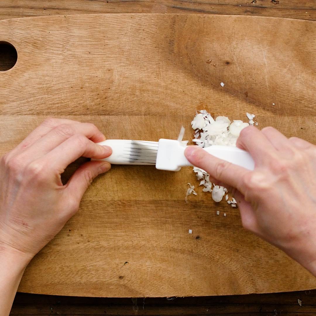長ねぎはネギカッターでみじん切りします。