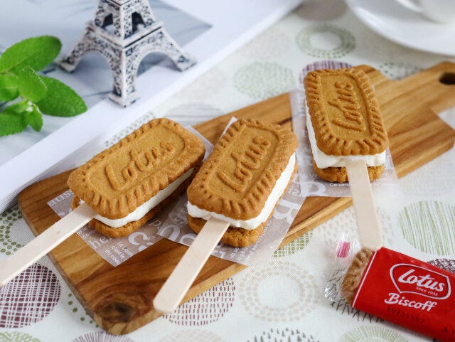 ② 同量のチーズクリームを上に広げ、もう1枚クッキーを乗せて、冷凍庫で1時間ほど凍らせて出来上がり。