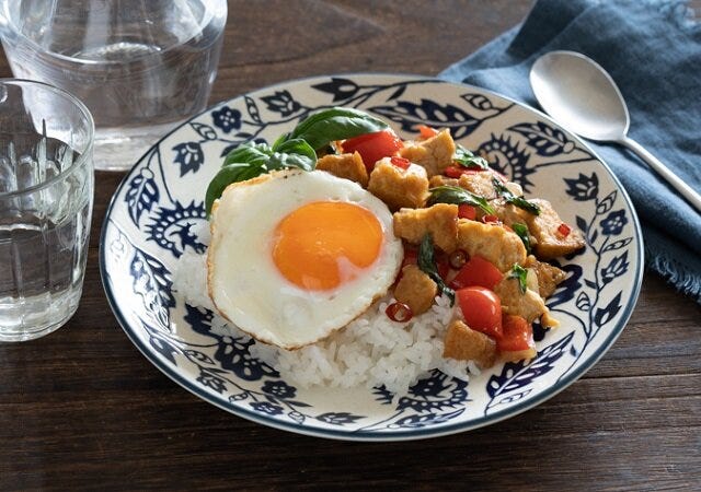 厚揚げと卵でタンパク質はもちろん、野菜も一皿でしっかり摂れ、手軽に作れる厚揚げのガパオライス。エスニック料理が食べたくなるこらからの季節、ぜひお試しください。
