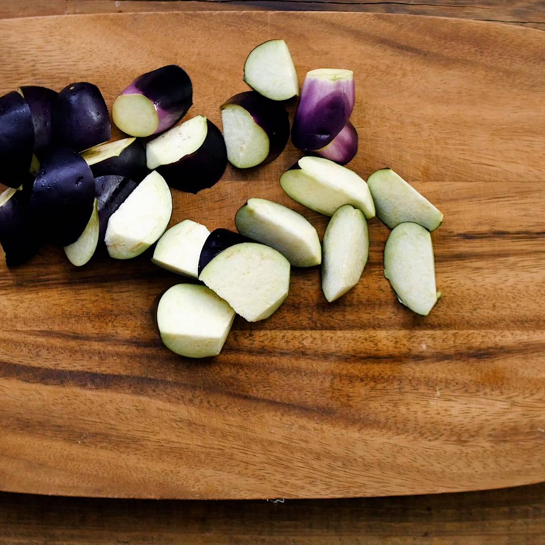 ・なす … 2本・a. にんにく(すりおろし) … 小さじ1/2杯・a. しょうが(すりおろし) … 小さじ1/2杯・a. 砂糖 … 小さじ1杯・a. しょうゆ … 大さじ1杯・a. 鶏ガラスープの素 … 小さじ1杯・片栗粉 … 大さじ3杯・サラダ油 … 適量【作り方】なすの唐揚げ