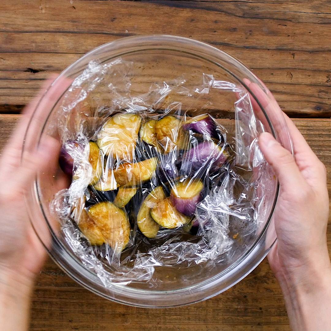 なすを加え、しっかりと揉み込み、10~15分漬け込みます。